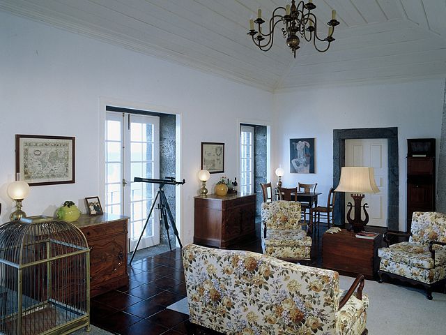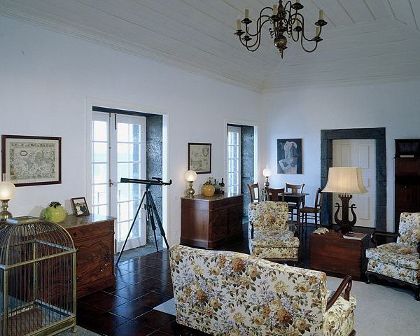 Classificado como imóvel de interesse público, está decorado à inglesa, com móveis de mogno polido e latão, tecido às flores, recordações de viagens, mapas e miniaturas de barcos, no aconchego de uma sólida casa de porto face à imensidão do oceano.